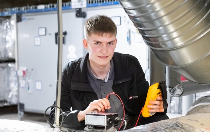 - På mit arbejde laver vi ventilationsløsninger, og et effektivt ventilationsanlæg kan spare både energi og ressourcer. Det handler om at varme og køle bygninger på den mest energieffektive måde, så man mindsker spild. På skolen lærer jeg også om energioptimering, fx hvordan man vurderer, om en motor bruger for meget strøm, og hvordan man kan skifte den eller justere gearet, så den bliver mere energieffektiv. På den måde lærer jeg hele tiden at finde løsninger, der både er teknisk stærke og gode for miljøet.